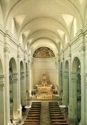La navata centrale prima del decoro dell'abside
